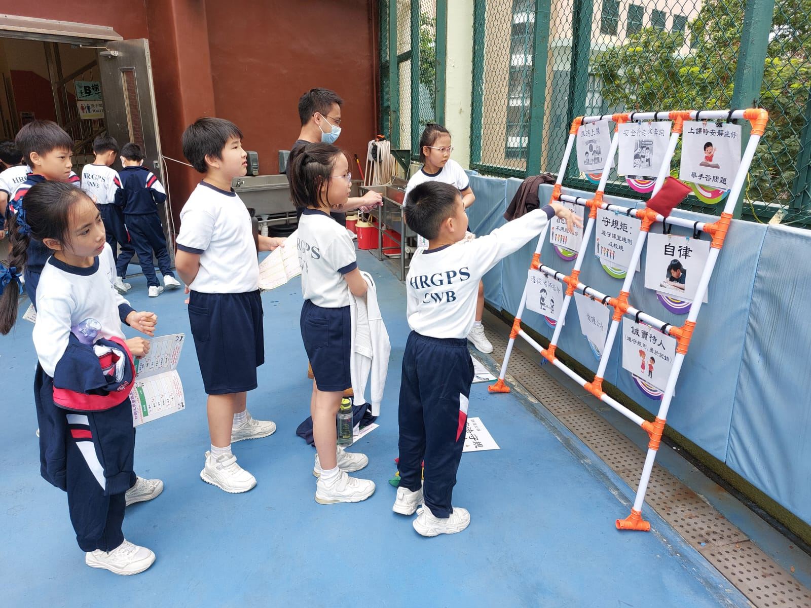 正向價值觀-小息攤位攤戲 小息時段準備正向價值觀攤位遊戲,為小一至小六提供輕鬆遊戲時間,內容滲入三個重點價值觀元素,讓同學寓學習於娛樂。三個重點價值觀包括國民身份認同、守法及團結。