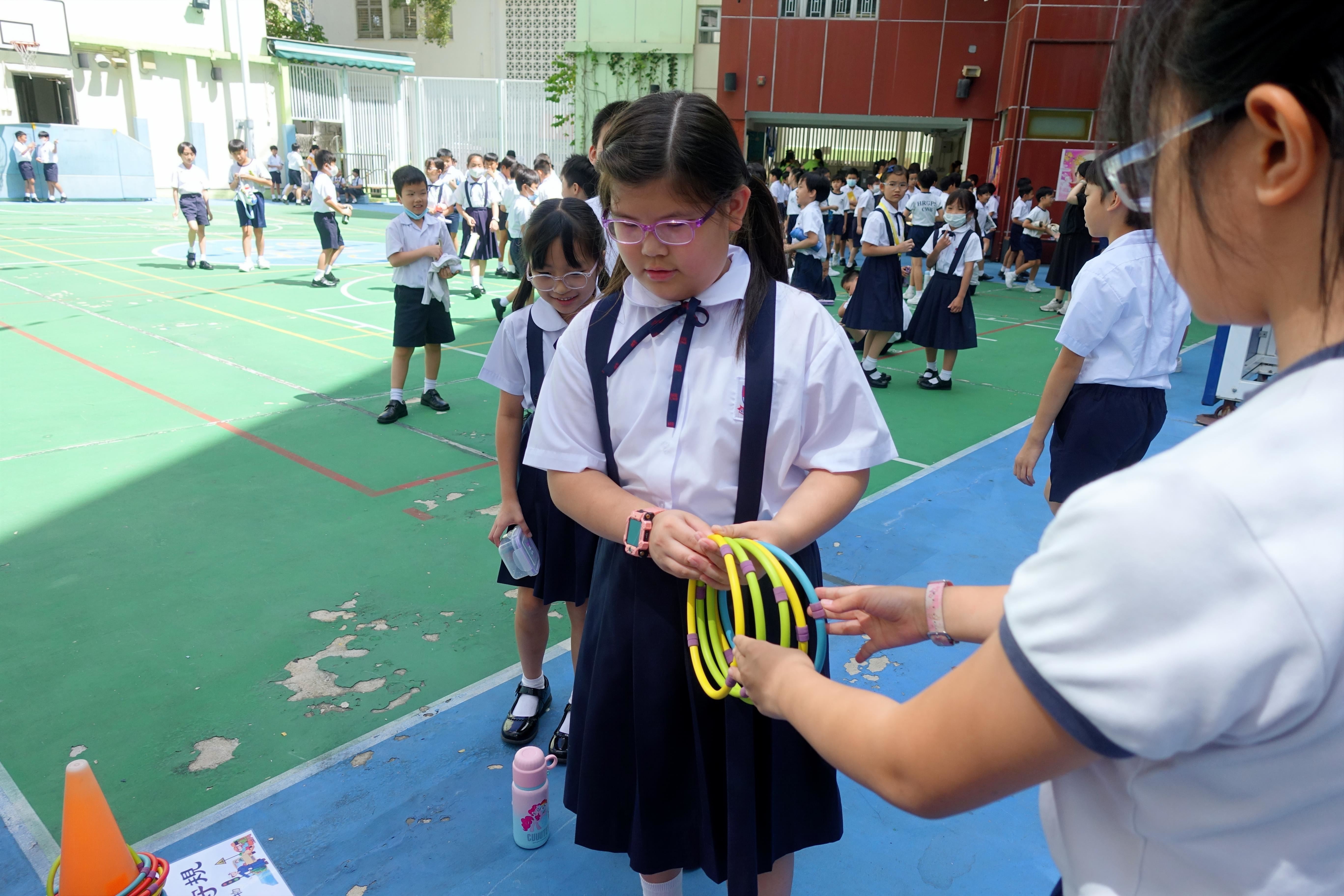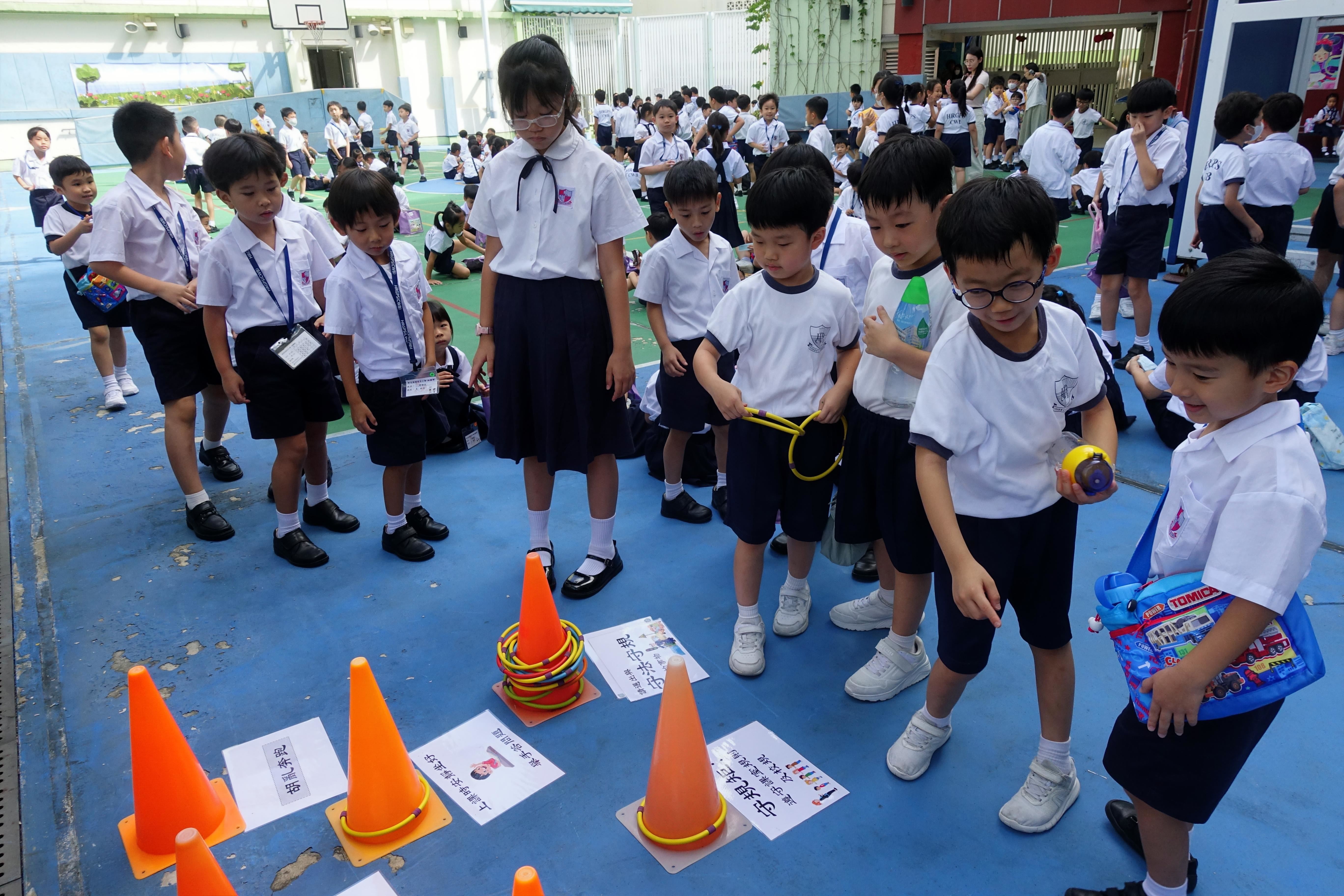 2023-09-15小一自理工作坊(星期五) 與循道衛理中心合辦,導師以遊戲形式,跟小一學生分享如何上學自理和守規,如執拾書包、小息進食,提升他們自理的能力感。